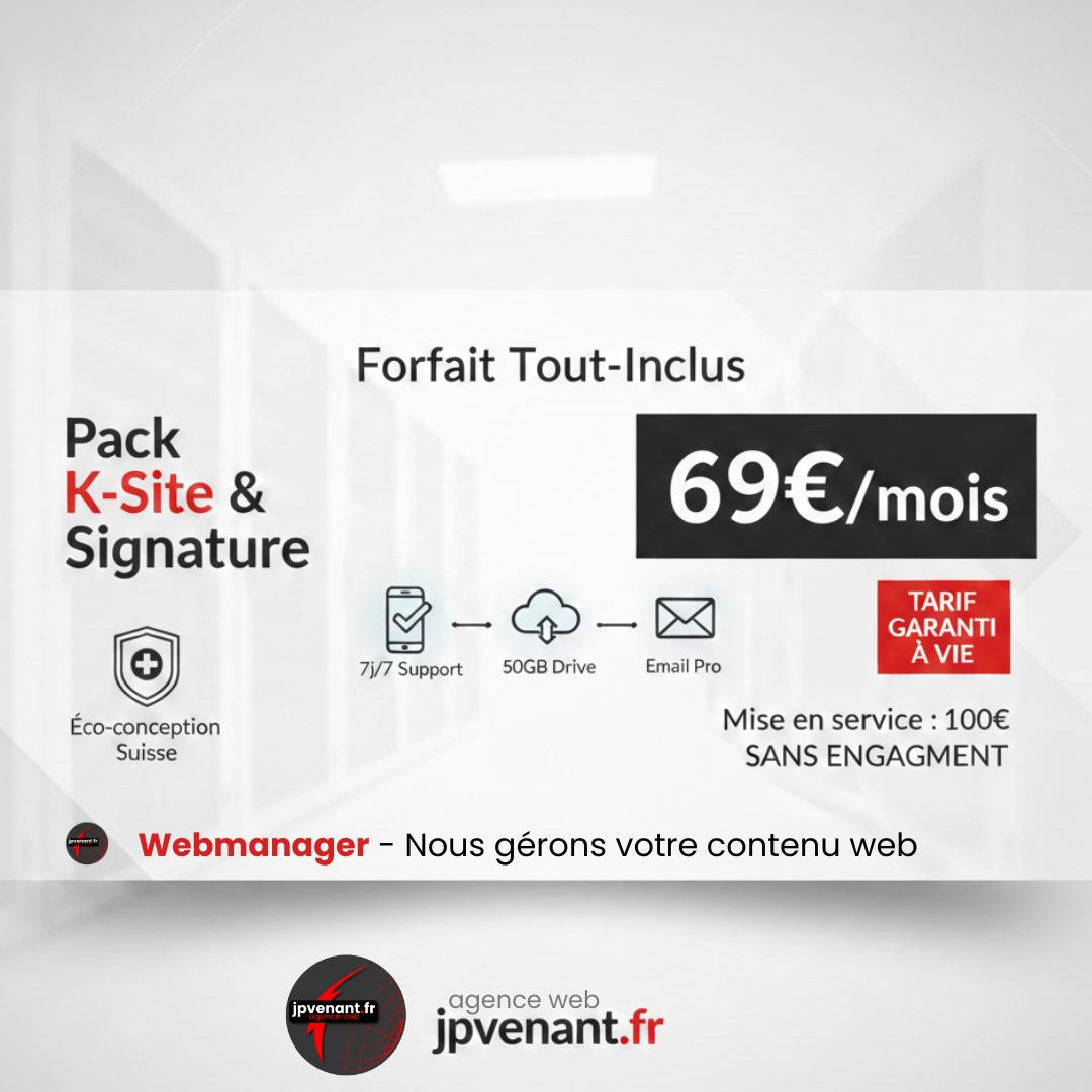 1. Code Performance & Éthique : Un site 100% Responsive codé en "Pur" Hébergement éco-responsable en Suisse sur des serveurs alimentés à 100% par des énergies renouvelables.